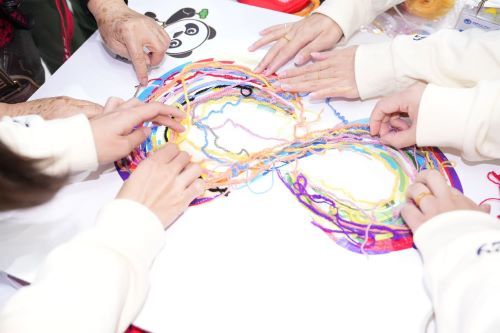 活动现场还为所有参与者准备了“恒爱毛线”和“恒爱亲巧包”,在海派绒线编结上海市级传承人励美丽及恒源祥非遗工作室工艺师的指导下,共同学习基础编织技法“辫子针”,并将亲手钩织的绒线粘贴于展板上的“8”字造型。当“8”字横置,巧妙化为数学中的无限符号“∞”,深刻点题“恒爱无限”——既寓意进博会八载历程,更昭示公益爱心永无止境、循环不息。(完)