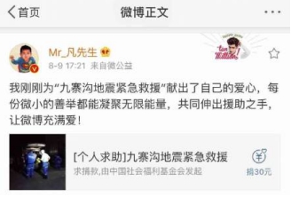 九寨沟地震捐款,这些明星最积极,韦杰最让人感动!