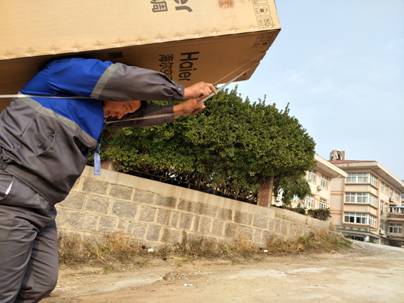 儿童福利院位于青岛浮山前,献爱心的路并不十分畅通。由于道路施工,送货的车辆在半山坡就被迫停下了,还有最后不到100米路程是靠海尔人的肩膀给扛进的教室。坡陡,空调100多斤重,两个海尔空调服务工程师一人一台,室内机和外机来回背了两趟,用了40多分钟才搬完。走进福利院,海尔工程师顾不上擦汗,直接拆箱、安装、调试开来,直到安装结束工程师们的汗都没干,他们只是觉着"孩子们得尽快用上空调"。很快,教室里的气温就暖和了起来。