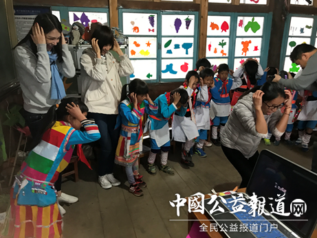 图说:雨霁天晴,孩子们做起了课间操,网友们才发现傈僳族的课间操其实是民族舞蹈,在老师们的引导下,孩子们迫不及待的跑上了还湿润着的操场上跳了起来。孔维和袁泉也加入进来,观看直播的网友热评“大饱眼福”。
