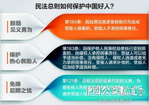2017年3月15日,“好人法”的面世似乎给救人者吃了一颗“定心丸”。《中华人民共和国民法总则》第184条规定:“因自愿实施紧急救助行为造成受助人损害的,救助人不承担民事责任。”