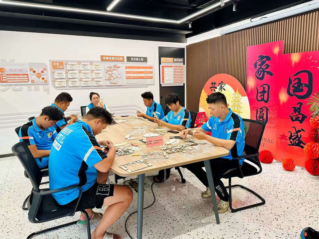 余杭区五常街道邱桥社区八方城小哥驿站里,小哥们正在参加中秋灯笼制作活动。图片由受访人提供