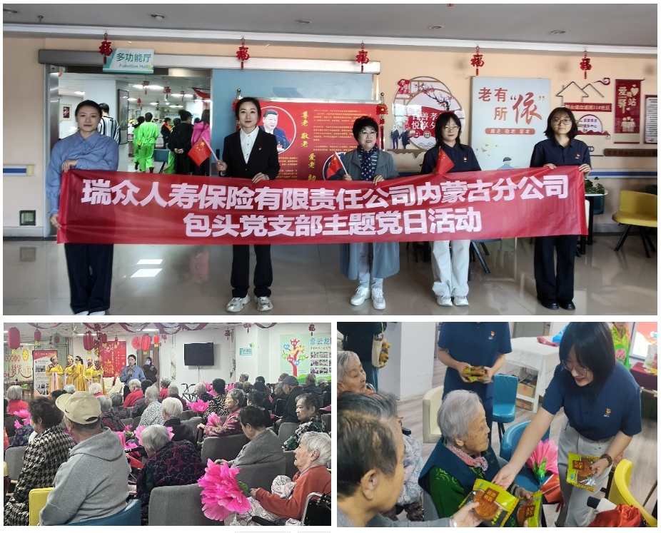 为深入践行党的群众路线,弘扬尊老敬老爱老的传统美德,切实发挥党员先锋模范作用,恰逢双节来临之际,瑞众保险内蒙古分公司包头党支部于2025年10月1日组织召开“党员先锋送温暖心系银龄情意浓”慰问养老院老人主题党日活动。