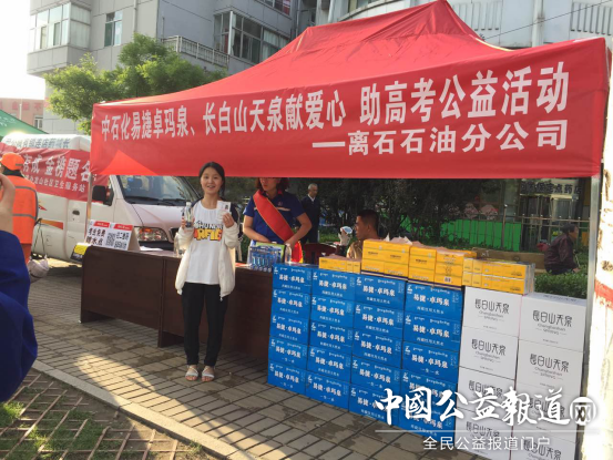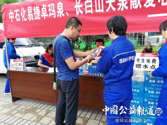 中石化吕梁石油分公司一直秉持立足吕梁、服务吕梁的社会价值观,他们连续多年向吕梁高考学子免费赠送易捷卓玛泉矿泉水,关爱学生也一直是易捷卓玛泉奉行的社会准则,2014年起,易捷卓玛泉通过多种形式开展爱心帮扶助学活动,并加入了抑郁症公益联盟。2017年6月7日、8日高考期间,中石化吕梁石油分公司继续在全市17个考点免费为考生及家长爱心赠饮,在此期间,高考学子们可凭准考证现场免费领取,放心饮用。中石化吕梁石油分公司现场工作人员王志峰“祝吕梁学子金榜题名,这是我们中石化吕梁石油分公司送给孩子们最诚挚的祝福。”