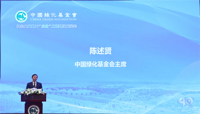 中国绿化基金会主席陈述贤在致辞中表示,中国绿化基金会作为我国林草生态公益领域的重要平台,在40年的发展历程中,累计动员达数亿人次参与国土绿化,筹集生态公益资金逾50亿元,带动社会各界植树15亿余株,实施防风固沙、城乡绿化美化、草原修复、湿地保护、水源涵养、森林质量提升、生物多样性保护等各类重点生态项目3000余个,生态修复面积达700万亩。