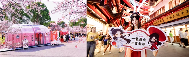 活动也吸引大量粉丝参与献血,并在各平台自发发布返图、分享体验,形成 “IP 粉丝→公益参与者→口碑传播者” 的转化链条。顾村樱花节期间的《镇魂街》主题献血泡泡屋、上海市血液中心校园行期间的《时光代理人》联合参与以及豫园“国创豫宙漫游季”的《天官赐福》动画场景联动,也进一步激发群众自发传播热情,让公益影响力持续扩散。