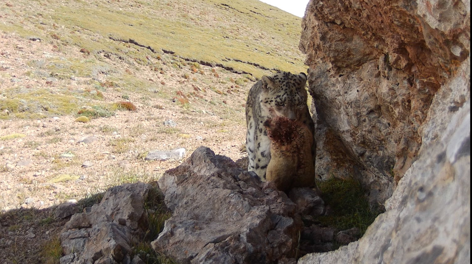 土丁扎西拍摄到的雪豹捕食旱獭的画面