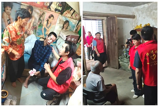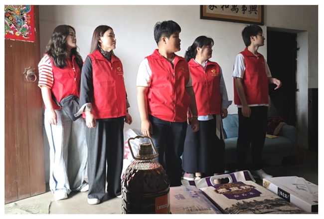 随后,团队前往红田村邹屋小组、山吓小组、下澳头小组、红星小组、苏木小组,集中慰问特困低保与独居老人。活动现场,爱心弟子们与老人们亲切互动,不仅发放米、面、粮油等生活慰问物资,还结合此前重庆公益行中探索的 "非遗+康养"模式,为老人们讲解非遗传统康养知识,分享健康养生理念。"感谢你们还记得我们这些老人,心里暖乎乎的",一位老人拉着慰问成员的手感慨道。没有繁复的仪式,只有真切的陪伴与关怀,让非遗财神文化走出典籍与殿堂,化作实实在在的温暖,生动践行了"利物济人"的文化理念。