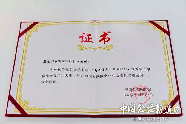 公益寻人造福社会获肯定 头条寻人入选中国互联网企业社会责任实践案例