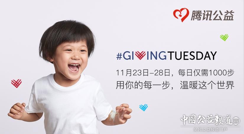 近期, 风靡全美的星期二回馈日(GivingTuesday)来到中国, 与国内最大的互联网公益平台腾讯公益达成捐步合作。在11月23日-28日期间,用户每日行走1000步,参与微信和手机QQ运动捐步,就可加入到Giving Tuesday的全球活动中,通过步数兑换善款,帮助白血病儿童,成为爱心传递的一员。