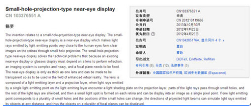 该专利的有益效果是,显示器件只有一片镜片,无需其他光学镜片,因此质量较轻;显示范围可任意扩大;显示虚拟物体的距离可在人眼的可视范围IOcm到无穷远之间任意选择,可同时显示多个不同焦平面的物体,可跟随人眼的焦点变化而虚化或清晰(这不就是Magic Leap说的光场显示吗)。