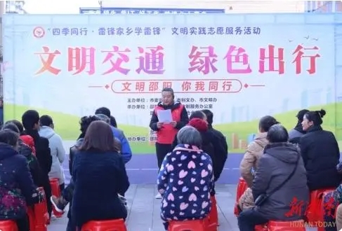 12月23日,由邵阳市委宣传部、市创民办、市文明办主办的“四季同行,雷锋家乡学雷锋”——文明交通,绿色出行志愿服务活动在大祥区红旗路街道九井湾社区举行。