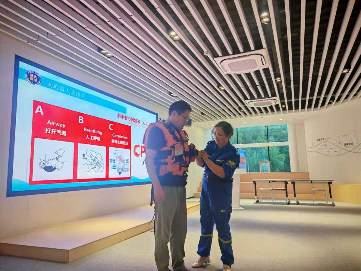 在随后的实操演示环节,钱沈树非重点展示了专业救援衣的正确穿戴、检查与保养方法,并详细讲解了救生圈、抛绳包等急救设备的使用技巧。她通过情景模拟,直观地演示了如何在确保自身安全的前提下,利用现有器材高效实施救援。讲解深入浅出,现场互动频频,志愿者们认真聆听,并就实际操作中可能遇到的问题进行了深入交流。