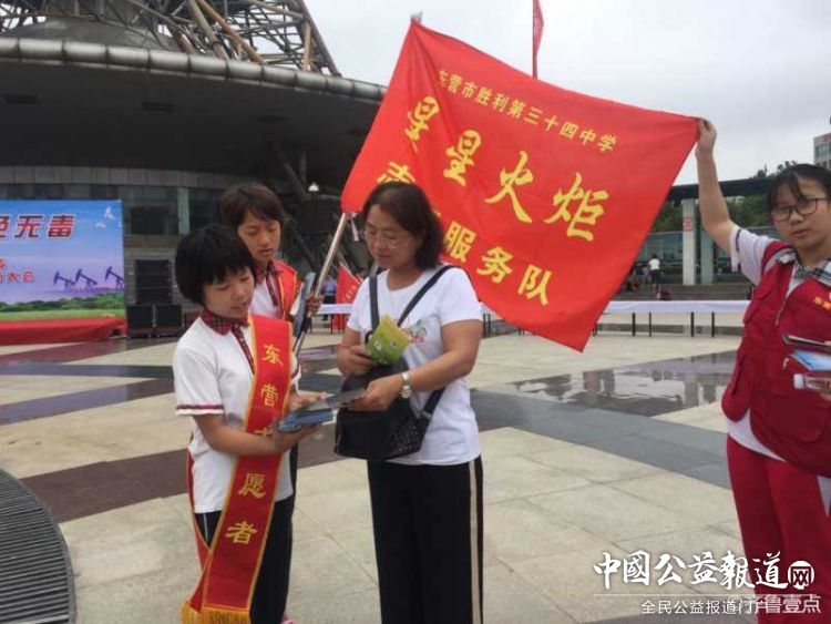 2018年6月26日是第31个国际禁毒宣传日,上午,我们胜利第三十四中学星星火炬志愿服务队60余名禁毒志愿者在少年宫广场,参加了由东营市禁毒委员会办公室、胜利石油管理局有限公司禁毒委员会办公室、东营市公安局、